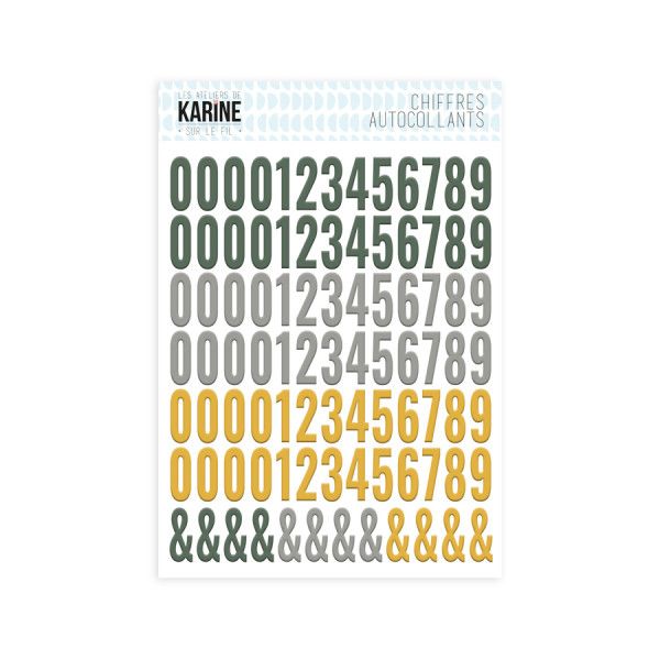 SUR LE FIL CHIFFRES AUTOCOLLANTS MOUTARDE VERT